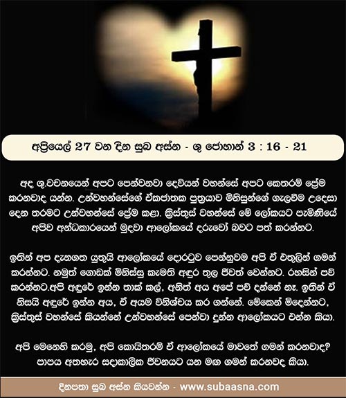 අප්‍රේල් 27 වන දින සුබ අස්න – ශු. ජොහාන් 3: 16 – 21