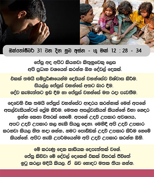 ඔක්තෝම්බර් 31 වන දින සුබ අස්න – ශු. මාක් 12: 28 – 34