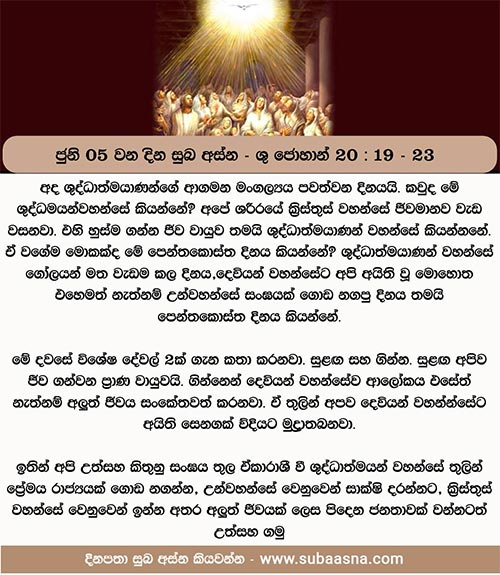 ජුනි 05 වන දින සුබ අස්න – ශු.ජොහාන් 20: 19 – 23