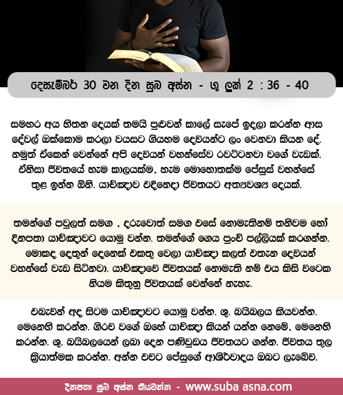 දෙසැම්බර් 30 වන දින සුබ අස්න – ශු. ලූක් 2: 36 – 40