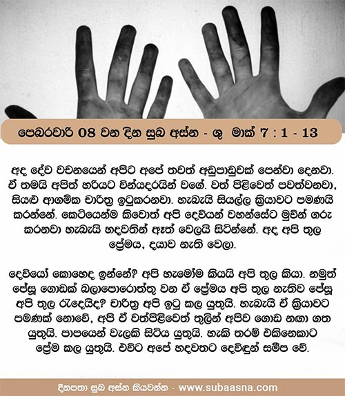 පෙබරවාරි 8 වන දින සුබ අස්න – ශු. මාක් 7 : 1 – 13