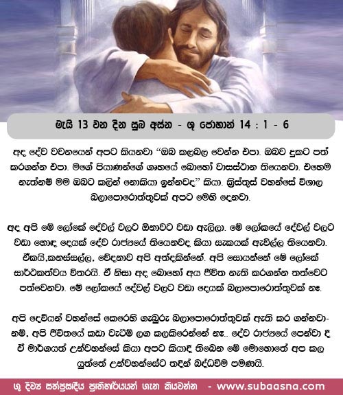මැයි 13 වන දින සුබ අස්න – ශු.ජුවාම් 14: 1 – 6