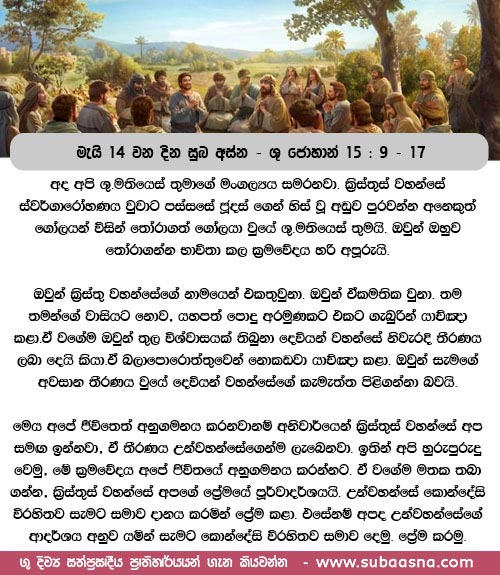මැයි 14 වන දින සුබ අස්න – ශු.ජුවාම් 19: 9 – 17