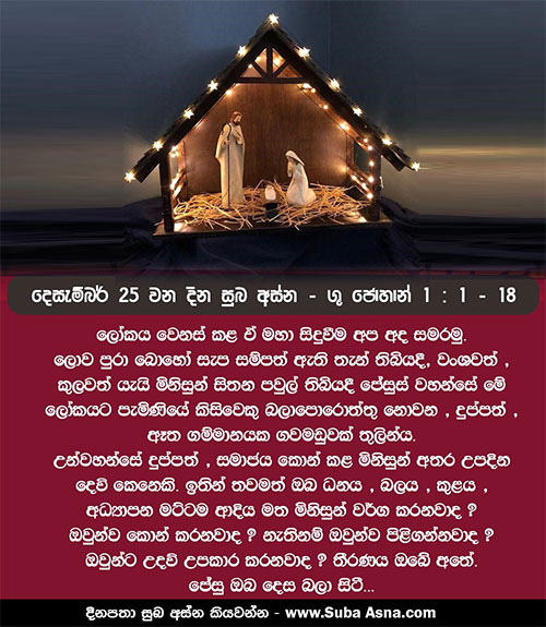 දෙසැම්බර් 25 වන දින අස්න – ශු. ජොහාන් 1: 1 – 18