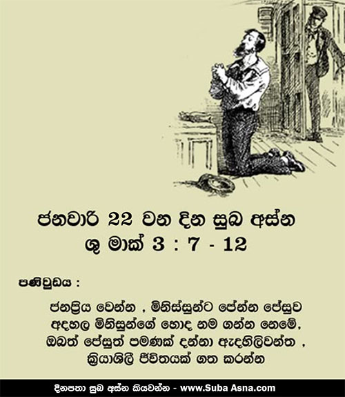 7 ජේසුස් වහන්සේ එතැනින් නික්ම සිය ශ්රාවකයන් සමඟ මුහුදු වෙරළට වැඩිය සේක. ගලීලයෙන් සහ ජුදයෙන් ද 8 ජෙරුසලමෙන් ද ඉදුමයෙන් ද ජොර්දාන් එගොඩින් ද තීර් සහ සීදොනය අවටින් ද මහා ජනකායක් උන් වහන්සේ කළ සියල්ල ගැන අසා උන් වහන්සේ වෙත ආහ. 9 සමූහයා උන් වහන්සේ නොතෙරපෙන පිණිස තමන් හට ඔරුවක් සූදානම් ව තිබිය යුතු යයි උන් වහන්සේ ශ්රාවකයන්ට වදාළ සේක. 10 එසේ කීවේ, උන් වහන්සේ බොහෝ දෙනෙකු සුව කළ හෙයින්, රෝගී වූ සියලු දෙනා එතුමන් ස්පර්ශ කරන්නට රැස් කකා ආ බැවිනි. 11 අශුද්ධාත්මයෝ ද උන් වහන්සේ දුටු හැම විට ම උන් වහන්සේගේ පාමුල වැඳ වැටී, ”ඔබ දෙවියන් වහන්සේගේ පුත්රයාණෝ ය”යි මොරගා කී හ. 12 තමා කවරෙක් දැ යි හෙළි නොකරන ලෙස උන් වහන්සේ ඔවුන්ට තදින් අණ කළ සේක.