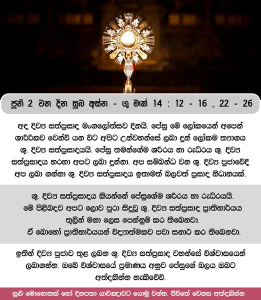 ජුනි 02 වන දින සුබ අස්න – ශු. මාක් 14: 12 – 16, 22 – 26