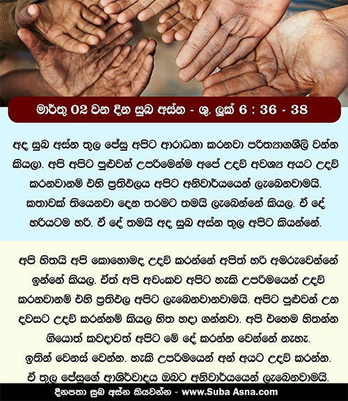 මාර්තු 02 වන දින සුබ අස්න – ශු. ලූක් 6: 36 – 38