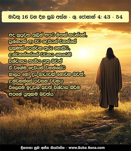 මාර්තු 16 වන දින සුබ අස්න – ශු. ජොහාන් 4: 43 – 54