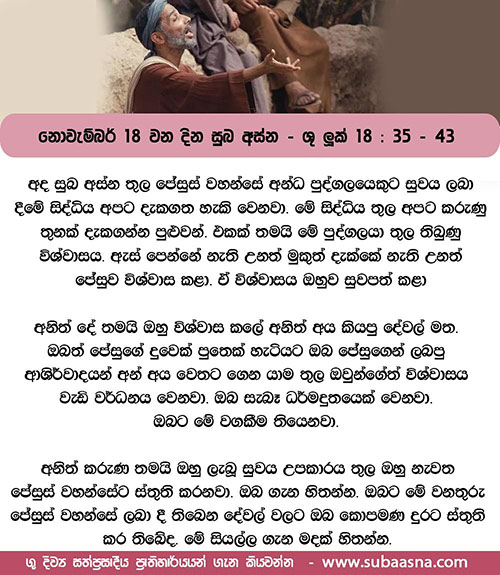නොවැම්බර් 18 දින සුබ අස්න – ශු. ලූක් 18: 35 – 43