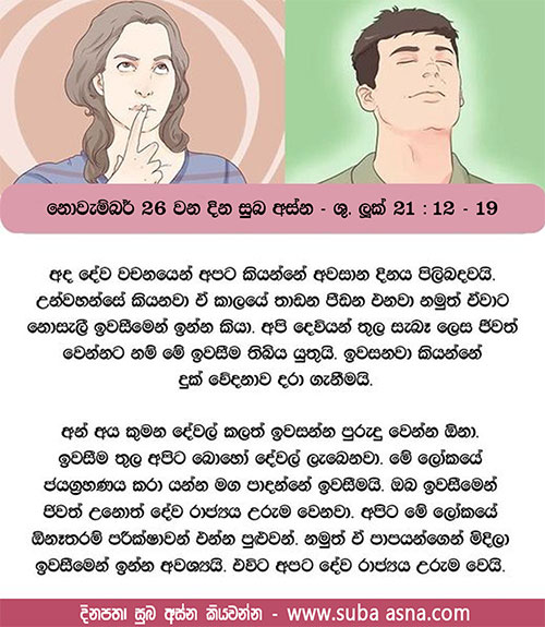 නොවැම්බර් 26 වන දින සුබ අස්න – ශු. ලූක් 21: 12 – 19